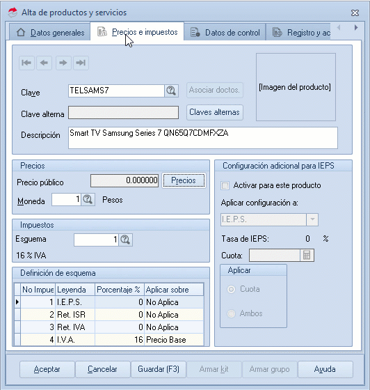 - Menú Inventarios, Productos y servicios, selecciona Agregar o Modificar.