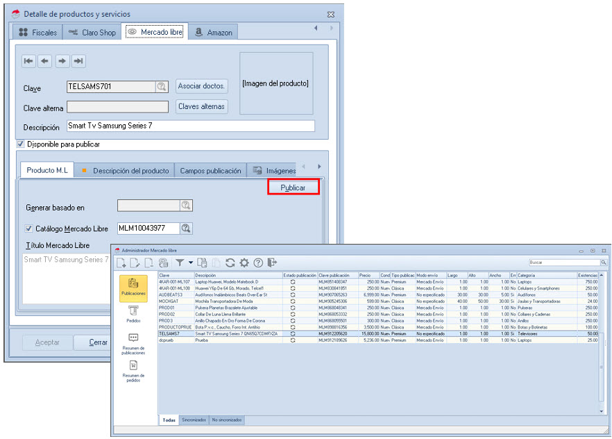 Publicar y administrar tus productos en Mercado Libre desde el sistema te permite llegar a más clientes, aumentar tus ventas y mantener actualizada la información de tus productos en línea sin duplicar esfuerzos, gestionando todo de forma centralizada, rápida y eficiente.