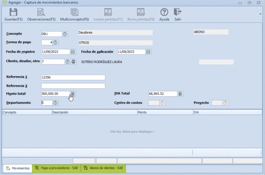 4. Capturar movimientos en BANCO.