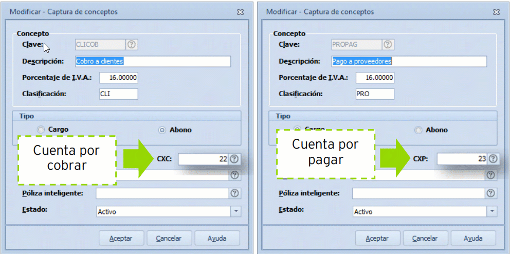 3. Definir cuentas por cobrar y por pagar en conceptos bancarios.