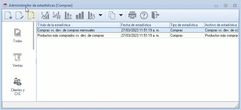 Para este ejemplo, se seleccionará la estadística Compras vs. devoluciones de compras mensuales: