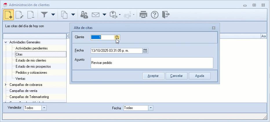 ¡Gran trabajo! Has aprendido a crear o dar de alta citas con clientes, optimizando la organización de tus actividades comerciales.