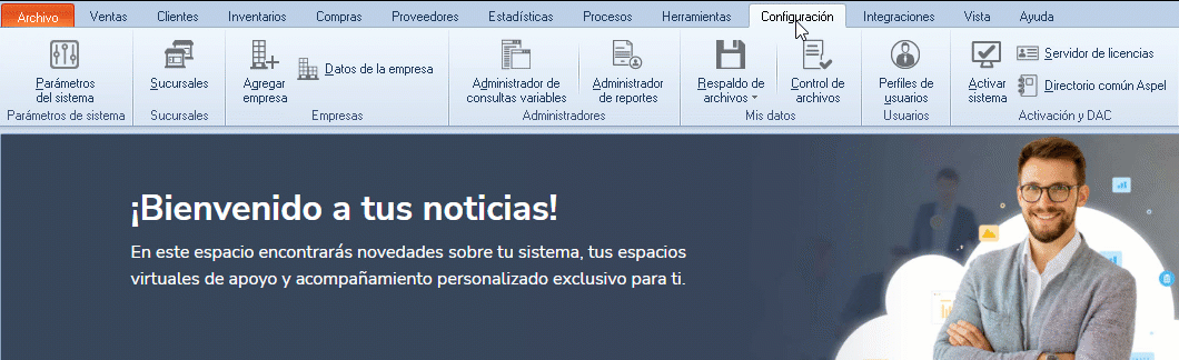 - Primero, ingresa a la ruta: menú Configuración, das clic en el ícono Administrador de reportes