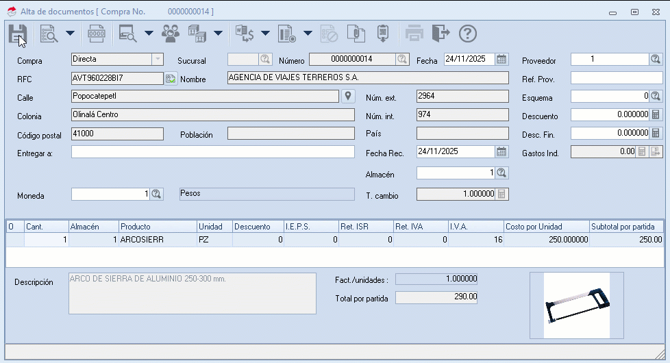 - Número de pagos: muestra el número de pagos en que se liquidará el importe del documento, de acuerdo a la forma de pago seleccionada.