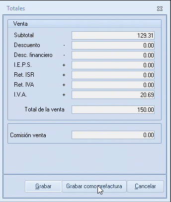 - Enseguida se visualizan los Totales del documento y presionas Grabar como prefactura