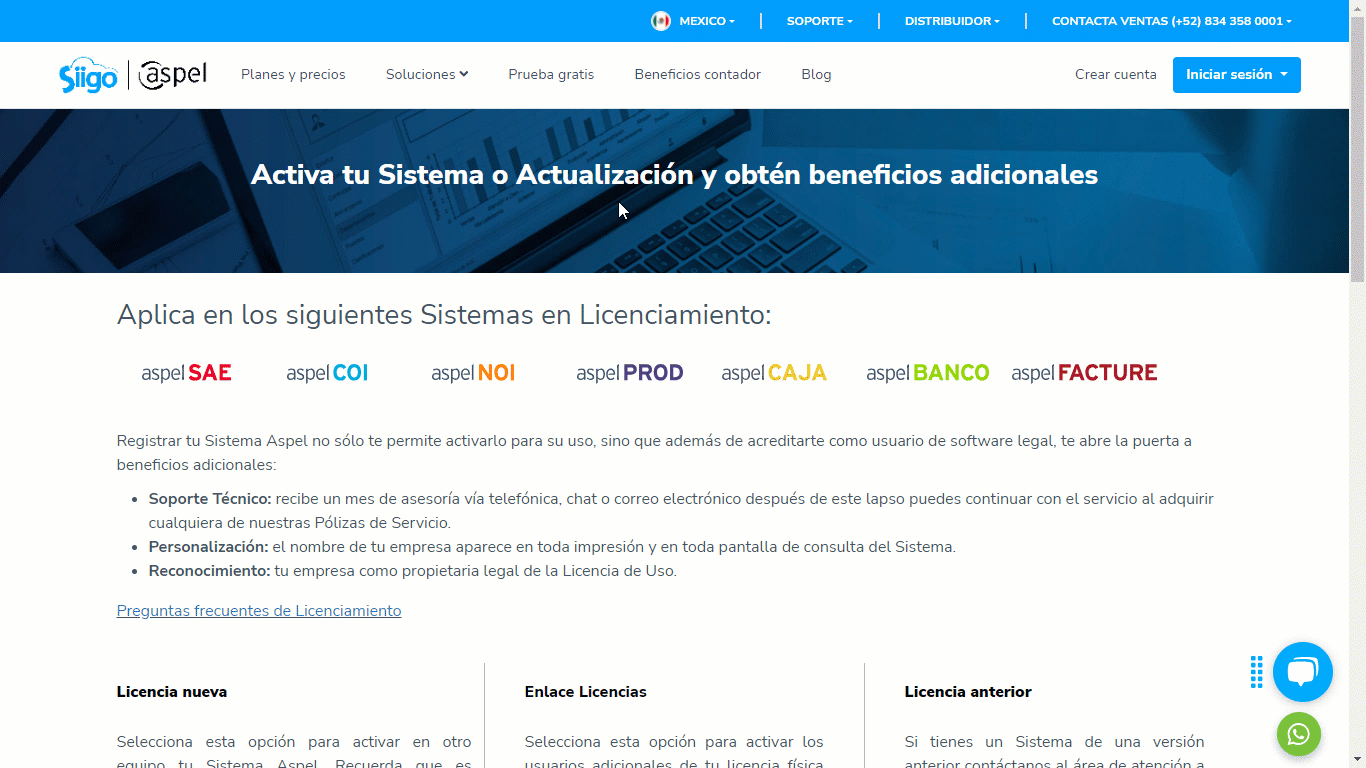 Este procedimiento te permitirá añadir derechos de uso al primer número de serie adquirido, es decir, si adicionalmente a la compra de tu paquete original (serie base), adquiriste licencias de usuarios adicionales con el fin de incrementar el número de usuarios que pueden acceder al mismo tiempo al sistema, deberás realizar este proceso para enlazar al paquete original las licencias adicionales.