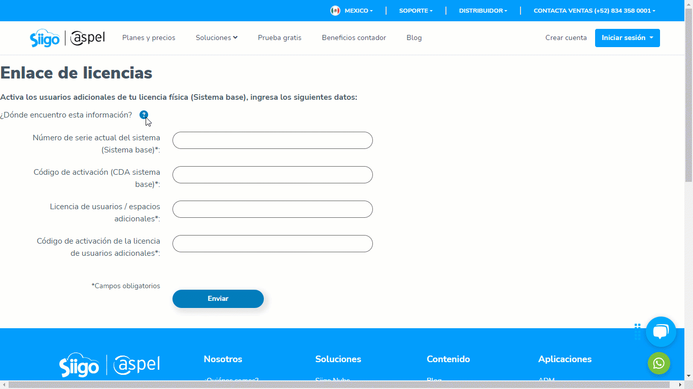 3. Indica el número de serie de tu sistema, la licencia de usuarios adicionales y sus correspondientes códigos de activación (CDA) los cuales se encuentran en el certificado de autenticidad respectivo.