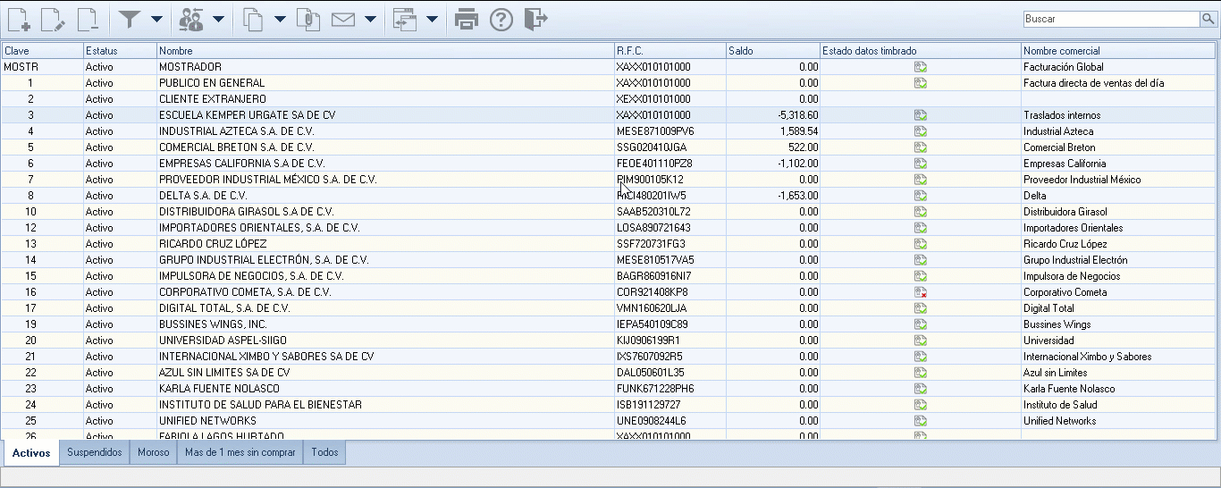 1. Para ejemplificar, se mandará a imprimir el catálogo de clientes. Para ello, ingresas a la ruta: menú Clientes y das clic en Clientes.