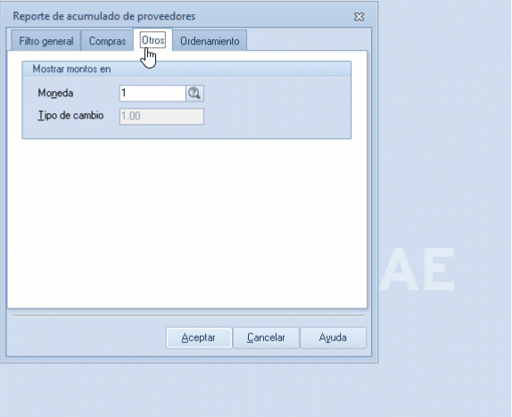 - Moneda: determina la moneda en la que se mostrarán los saldos, independiente de la registrada en los documentos.