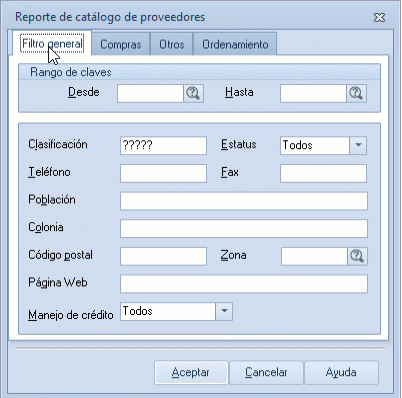 - Rango de claves: indica el rango de claves de los proveedores que deseas incluir en el reporte.
