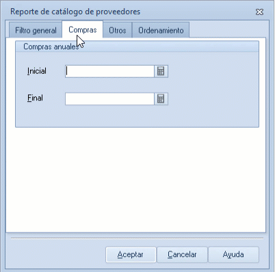 Compras anuales (Inicial/Final): especifica un rango de proveedores según el monto total de sus compras anuales.