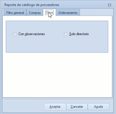 Solo directo: emite un informe más resumido con información específica como clave, nombre o razón social, teléfono y persona que atiende compras o pagos.