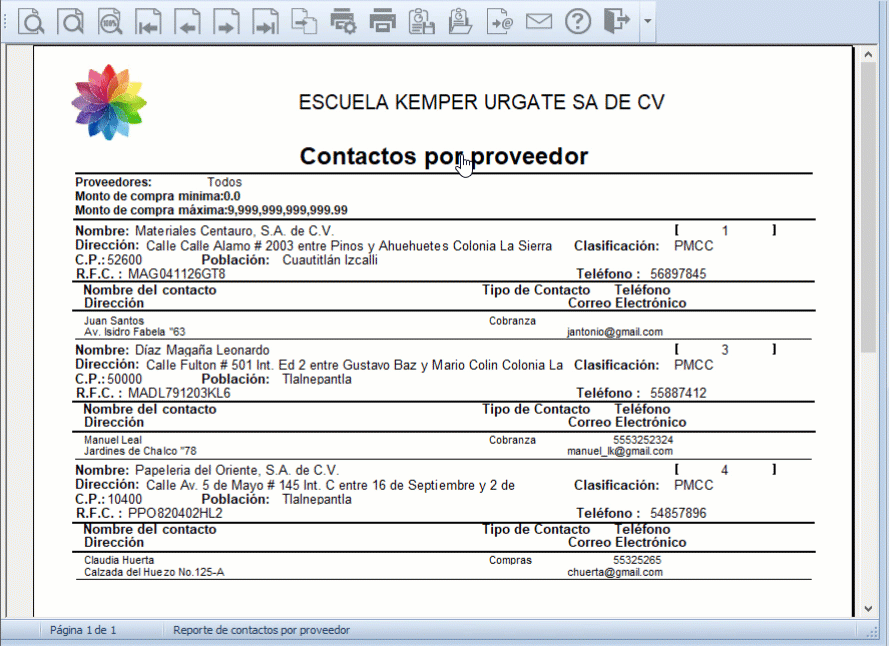 ¡Excelente! De esta manera es posible generar el reporte de contactos de proveedores y mantener siempre actualizada la información.
