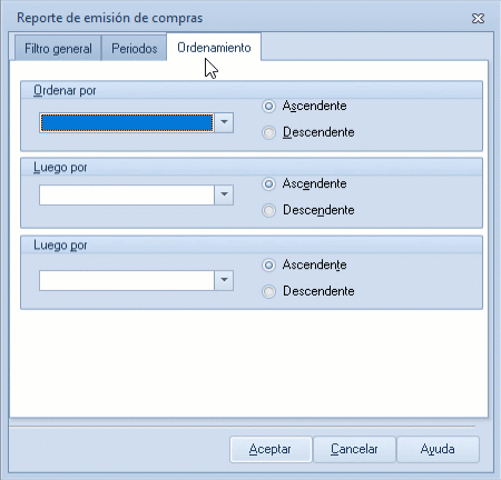 - Luego por: elige un campo o columna secundaria para refinar el orden del reporte, también con opción de ascendente o descendente, siendo ascendente la predeterminada.