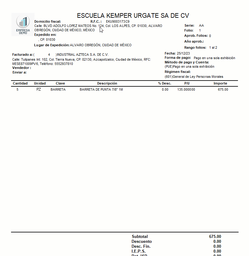 Este informe te permite generar, imprimir o reimprimir facturas emitidas, filtrando la información por clientes, vendedores, rangos de folios o fechas, lo que facilita el control, seguimiento y respaldo de tus operaciones de venta.