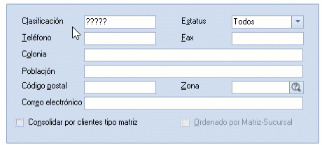 - Clasificación: utiliza este campo para filtrar la información de ciertos Clientes que tengan asignada una clasificación en particular.