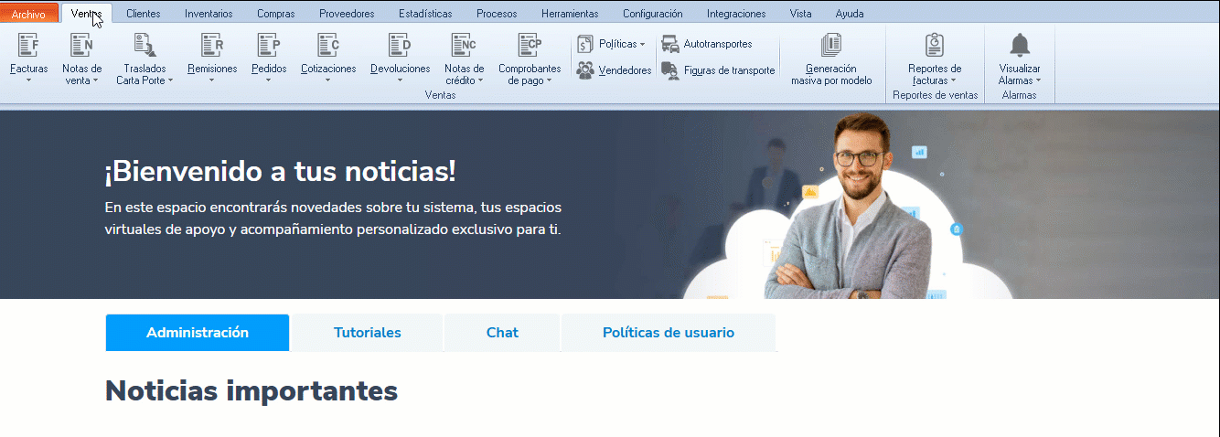 Diferente a administrador | Se muestran todos los documentos conforme a las series asignadas a las sucursales a las que el usuario se encuentre asignado | |