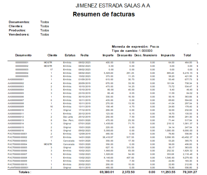 Generar el reporte de resumen de facturas te permite consolidar y analizar la información de ventas de manera precisa, filtrando por documentos, clientes, vendedores, productos, impuestos, fechas o almacenes, para facilitar la toma de decisiones, el control administrativo y la verificación de tus operaciones comerciales.