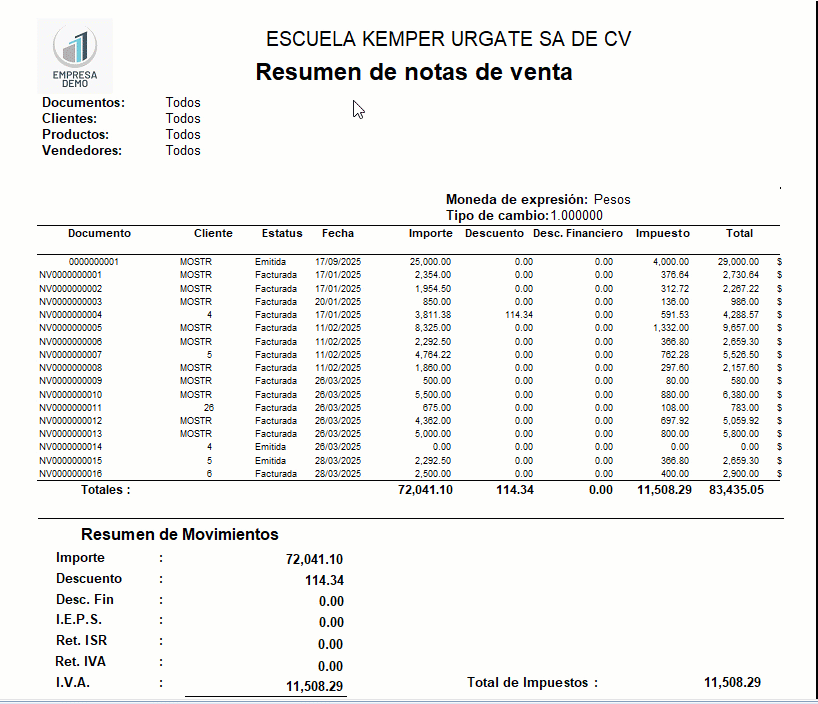 ¡Excelente! Has completado con éxito el proceso para generar reporte del resumen de notas de venta.