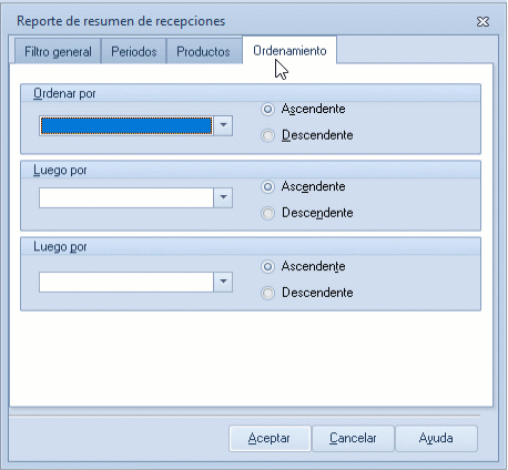 - Luego por: elige un campo o columna secundaria para refinar el orden del reporte, también con opción de ascendente o descendente, siendo ascendente la predeterminada.