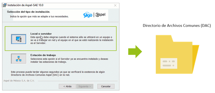El DAC (Directorio de Archivos Comunes) se genera al instalar un sistema Aspel en modo Local/Servidor. Su función es centralizar archivos esenciales para el correcto funcionamiento del sistema.
