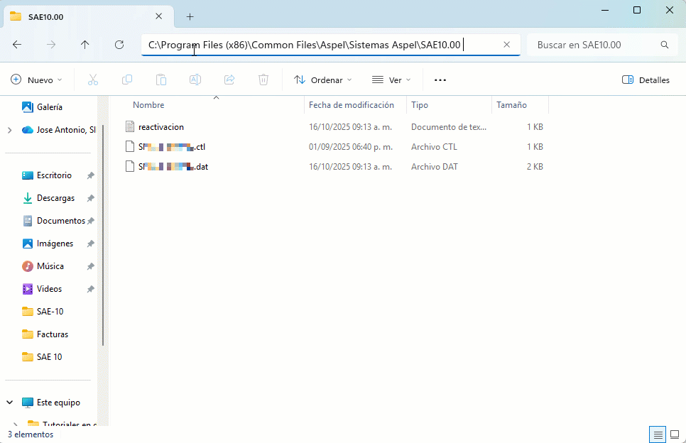 - Puedes encontrar la ruta del DAC en el archivo con extensión *.dat; para ello, ingresa a: C:\Program Files (x86)\Common Files\Aspel\Sistemas Aspel