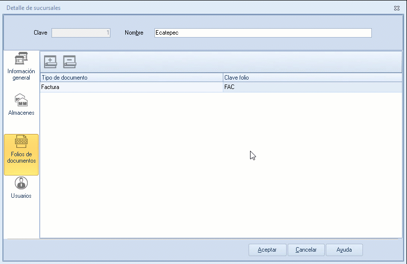 Esta opción te permite realizar la edición de información de la sucursal en caso de que falten datos, por ejemplo los folios de los documentos.