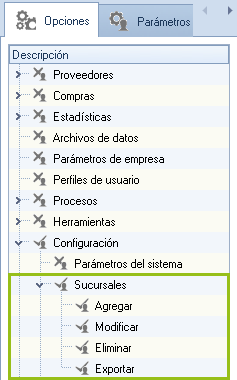 - Se integran en los perfiles de usuario, la sección de sucursales en donde se pueden delimitar los permisos para agregar, modificar, eliminar y exportar la consulta de sucursales.